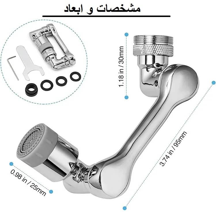 آزادی عمل بینظیر در شستشو با سرشیر آب چرخان!مشکل همیشگی: زاویه ثابت آب در اکثر شیرها، شستشوی دقیق و آسان را دشوار میکند.راه حل ایدهآل: سرشیر آب متحرک 360 درجه، انقلابی در شستشو!مزایای این سرشیر:چرخش 360 درجه: تنظیم زاویه آب در هر جهتی که میخواهیدسه بازوی مجزا: امکان تنظیم دقیقتر زاویه خروجی آبقابلیت چرخش 1080 درجه: حداکثر انعطافپذیری برای شستشودو حالت خروجی آب: حالت عادی و حالت پاششینصب آسان: بدون نیاز به ابزار خاصجنی بدنه ABS مقاوم با روکش استیلجلوگیری از چکه کردن: با استفاده از واشرهای تعبیه شدهکاربردهای متنوع:آبکشی آسان ظروف و سینک ظرفشوییتمیز کردن دقیق روشوییایجاد آبخوری برای کودکان و حیوانات خانگی..